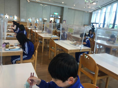 昼食は、しっかりとした感染対策をした中でいただきました。