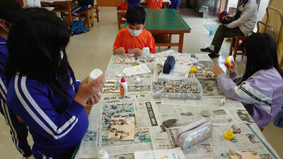 2022年10月7日 10時20分貝の壁飾りづくりをしました。