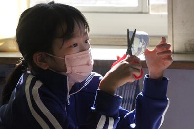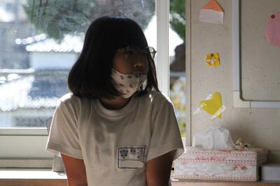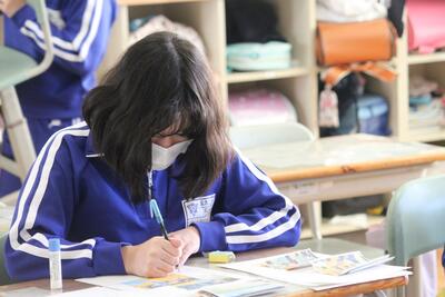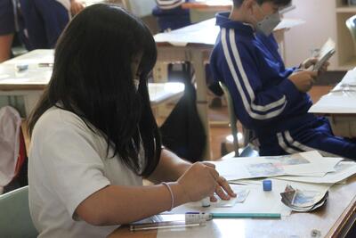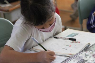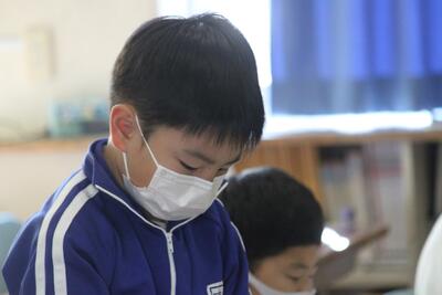 2022年10月20日 12時43分学級活動でハロウィンパーティーの話し合いをしている1年生。
