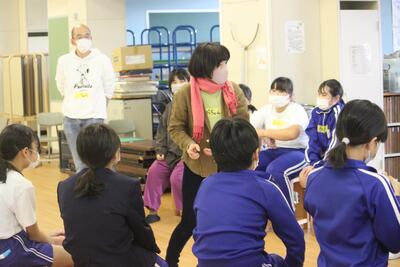 6年生は、演劇ワークショップのなおちゃんたちに練習の様子を見ていただき、