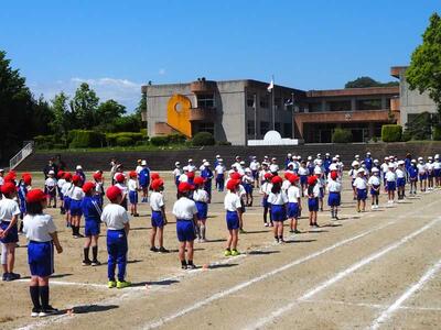 2023年5月11日 14時20分今日の2校時目は、3回目の運動会全体練習でした。昨日の予行練習の反省を生かして、開会式、応援合戦、閉会式の練習をしました。整列の仕方も上手になりました。