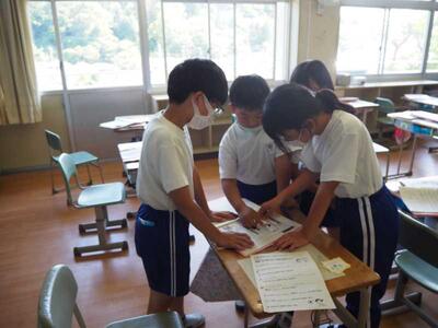 5年生は、外国語「名刺交換をしよう」の学習です。英語で自己紹介をして、名刺を渡します。