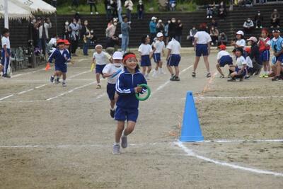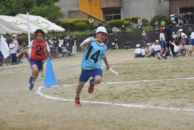 低学年、中学年、高学年のブロックごとに、全員リレーを行いました。応援の声にも力が入っていました。みんな、全力で最後まで走りきりました。