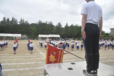 白組に優勝旗が渡されました。勝ち負けも大切ですが、勝ち負けの前に、児童一人一人が元気いっぱい全力を出し頑張っていたことが素晴らしかったです。