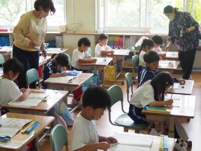 2023年5月16日 10時40分1年生は、6はいくつといくつに分けられるかの学習です。実際に6がいくつといくつになるかをブロックで確かめながら取り組んでいました。