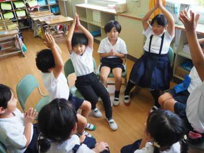 1年生は、学級活動で前に話し合った「みんなでなかよくたのしくあそぼう」でゲームをしました。「ごろごろどかんゲーム」「たけのこにょっきゲーム」などでみんな大盛り上がり。みんなで仲良く遊ぶことができ、みんなが楽しむことができたと思います。