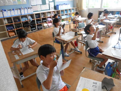 4年生は、学期末ということで理科のテストに真剣に取り組んでいました。