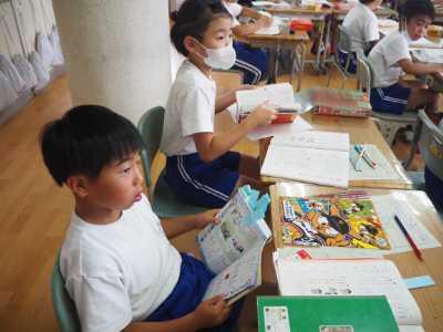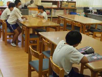 2023年9月4日 15時20分今日の天気は雨。暑さは少し和らいだような気がしますが、大休憩、子どもたちが楽しみにしている外遊びはできませんでした。この状況を見た図書の担当教員が急遽図書館を開放しました。児童が訪れて静かに本を読んでいました。