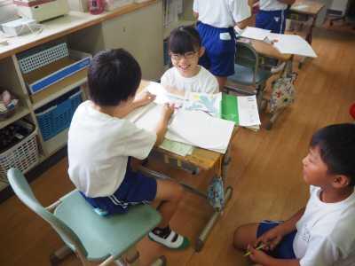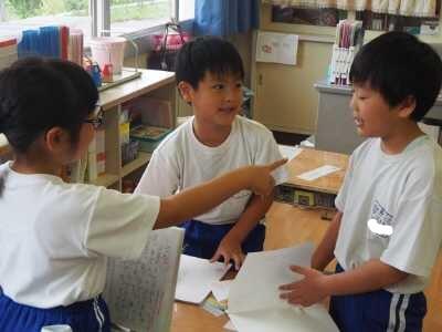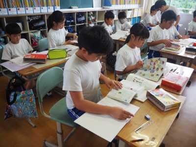 2年の国語は、「ことばでみちあんない」の学習です。地図の中から決めた待ち合わせの場所を友達に言葉で道案内をしています。聞いている人はメモをとりながら聞いています。メモをもとに目的地の場所に行くことができたでしょうか。