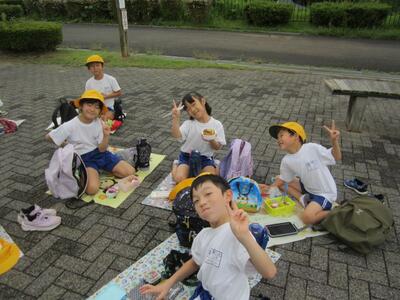 お弁当とおやつを食べて、わんぱく公園で遊びました。