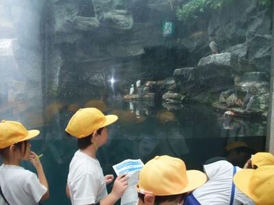 アクアマリン館内では、海の生きものクイズのワークシートに挑戦しました。答えは当たっているかな。月曜日に答え合わせです。公共の施設でのマナーをしっかりと守って、楽しく見学できました。