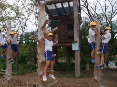 アクアマリンエッグ内の「どうぶつごっこ」には、動物が遊ぶような楽しい遊具がたくさんありました。動物になった気分で遊べたようです。