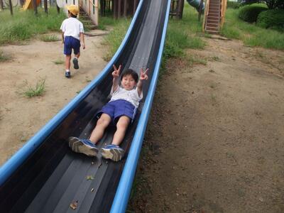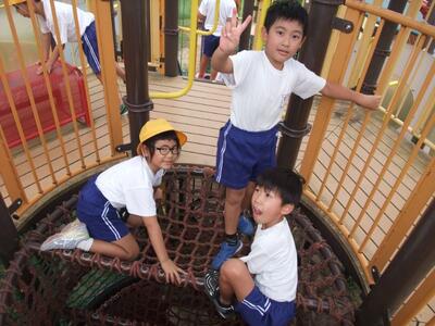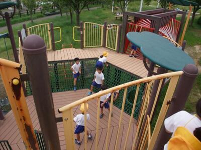 いわき公園ではおいしいお弁当を食べてから、遊具でたくさん遊びました。風がそよそよふいていて、気持ちよく遊べました。