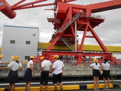 小名浜港をバスで見学しました。小名浜港では石炭が多く運ばれていました。また、石炭を運ぶ機械が大きくてびっくりしていました。