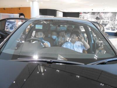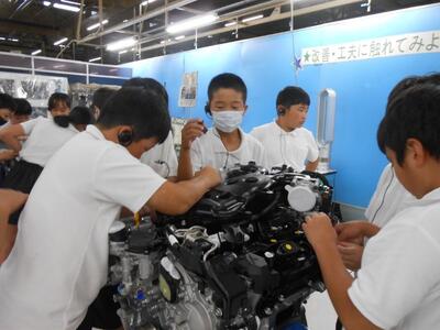 最新の車やエンジンがいっぱいあって、驚きが大きい日産工場。エンジンの部品の取りつけを見学・体験したり、車に試乗したりしました。