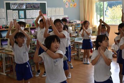 2年生は、学習発表会のダンスの練習をしていました。一つ一つの振り付けを確認しながら練習しました。