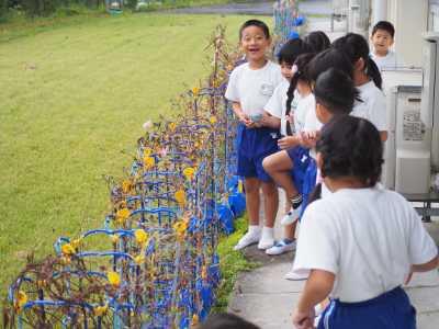 2023年10月4日 12時58分1年生は、生活科の学習です。子どもたちが一生懸命に育ててきたアサガオにたくさんの種ができました。たくさんの種ができてうれしそうです。一つ一つ丁寧に種を取り出していました。
