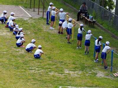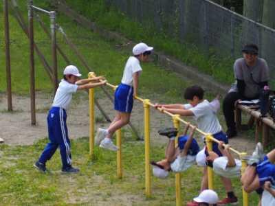 4年生は体育で、鉄棒運動を行っていました。逆上がりの練習です。みんな意欲的に取り組んでいました。