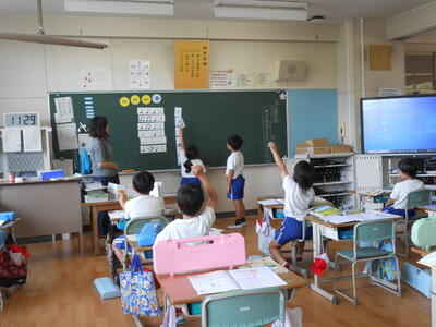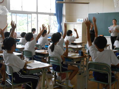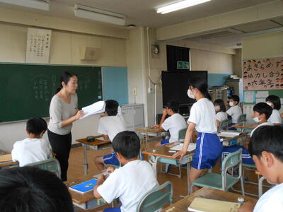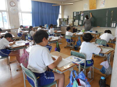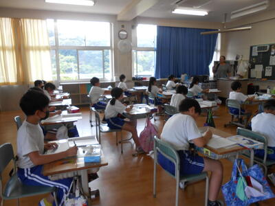 4年生の4校時は、算数科のわり算の学習です。「先生もうできました。」「もっと問題を出してください。」と、大変意欲的に取り組んでいました。子ども達が「わかる・できる」を味わうと、学習が楽しくなりますね。スモールステップで、取り組ませていきたいと思います。