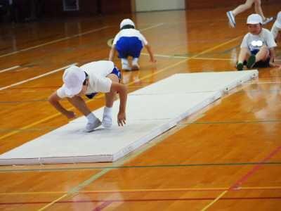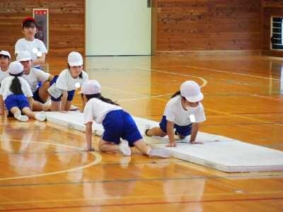 2年生は、体育の運動あそびとして体ほぐしの運動を行いました。前半はうさぎジャンプやあざらし等の運動をし、後半はフラフープを使ってボールまわしリレーを行いました。友達と話し合いながら協力して取り組み、リレーを楽しんでいました。