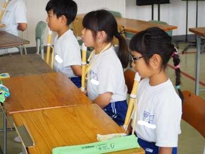 3年生は、リコーダー講習会でした。講師の先生に、リコーダーの持ち方、息の入れ方、指の押さえ方などを教えていただき、曲に合わせて「シ」、「ラ」、「ソ」の音を出して演奏することができました。
