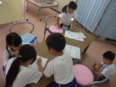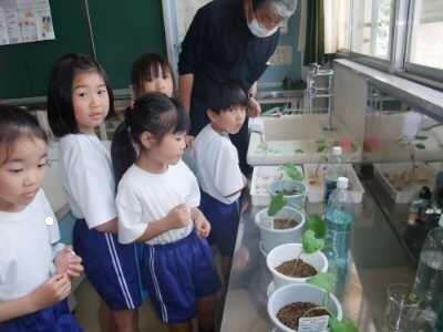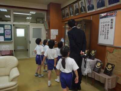1年生は、生活科の「がっこうたんけん」です。1、2年生でグループを作り、グループごとに活動しました。1年生は、初めて入る場所も多く、いろいろな場所を見て、とてもびっくりしていました。学校のいろいろな場所を見学したり、考えてきたことを質問したりすることができました。2年生は、1年生を引率するだけでなく、入退室の仕方の見本を示したり、メモのお手伝いをしたりしてくれました。