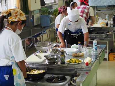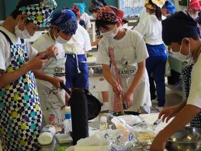 6年生は、家庭科の調理実習です。「いためる調理で朝食のおかずを作ろう」の学習で、グループごとに炒める料理を決め、作り方などを調べてまとめてきました。今日は、その作り方を確認しながら、友達と協力して調理することがめあてです。卵やほうれん草、じゃがいも、にんじん、玉ねぎなどを炒め、味付けも工夫しながら調理することができました。最後に試食です。どのグループもおいしくできたようです。