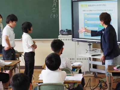 5年生は、5校時目に消費者教育として、いわき市消費生活センターの消費生活コーディネーターの先生に授業をしていただきました。契約のしくみの説明のあと、ネットいじめ、オンラインゲームの高額請求などのネットトラブルについて具体的に例を挙げていただき、みんなで考えることができました。この学習を機会にご家庭でもお子さんとスマホやタブレット等の使い方について話し合っていただければうれしいです。