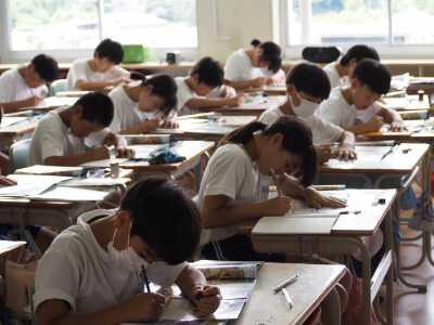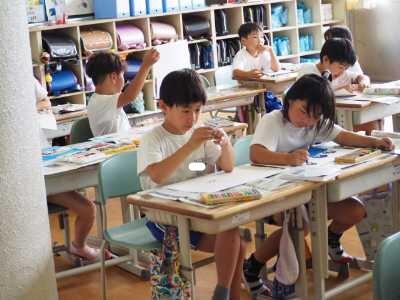 2年生は、算数の「長さ」のまとめの学習です。ワークやドリルパークを行うなどして、学習したことを確認しながら取り組んでいました。みんな意欲的です。