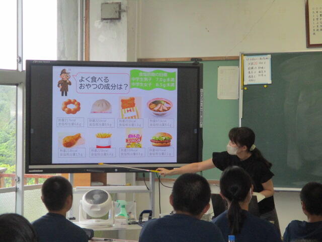 普段何気なく口にしている清涼飲料水やおやつに含まれる糖分の量やカロリーなど興味深く聴き入り、生活リズムや食生活などの改善について考える時間になりました。
