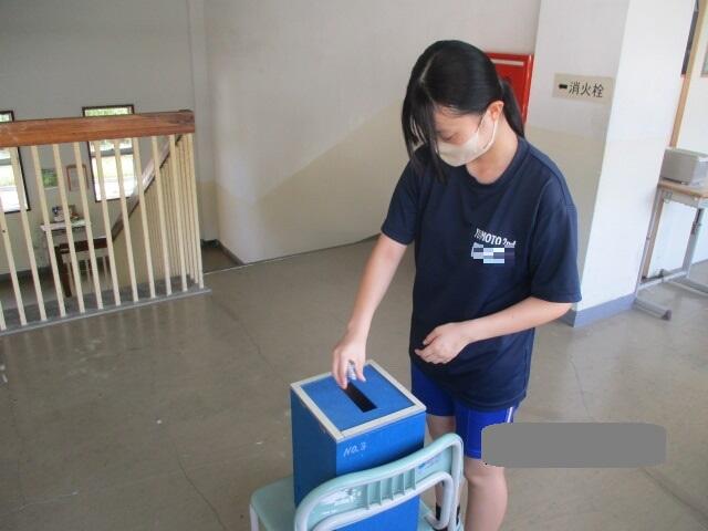 6校時に、オンラインで後期生徒会役員立候補者の立会演説会が実施され、その後投票が行われました。