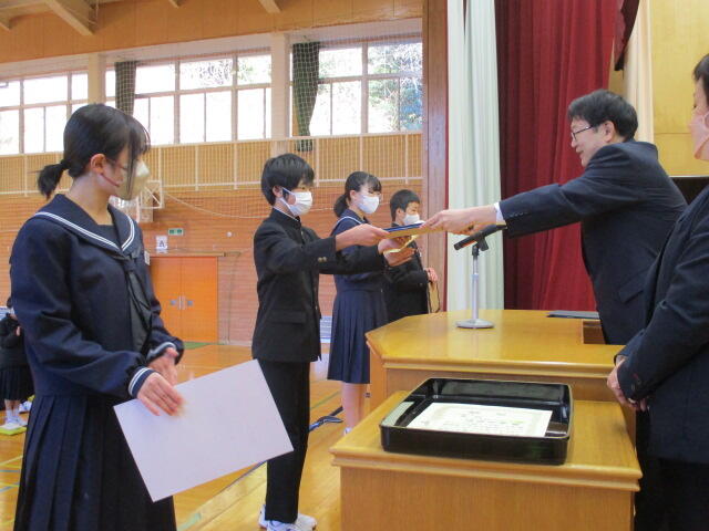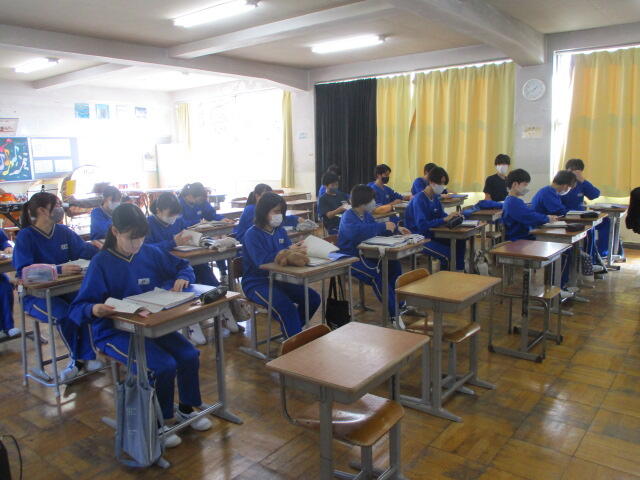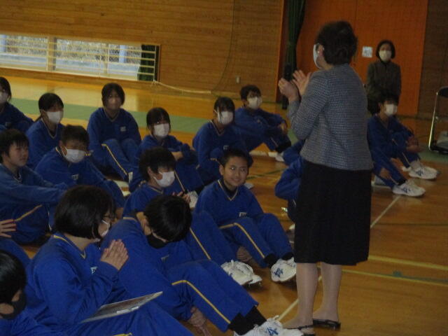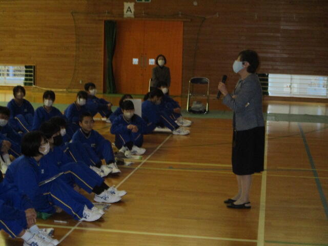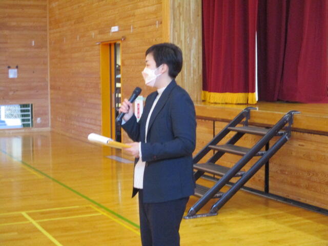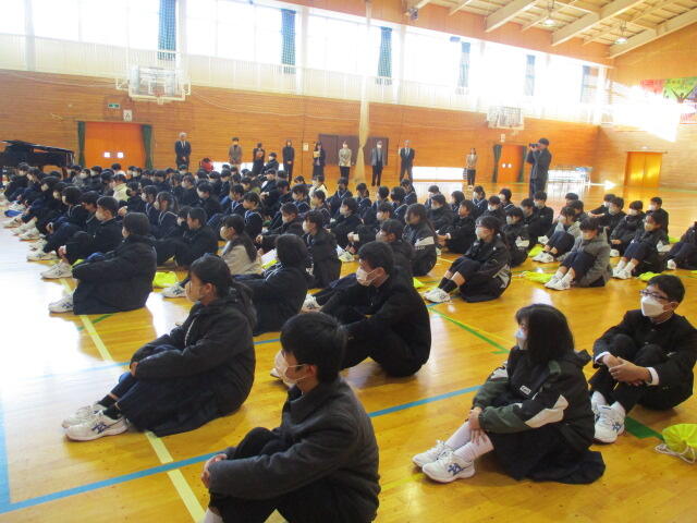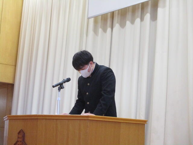 そして、1年生、2年生の皆さん、3年生みんなが頑張るので、委員会活動などでのサポートをよろしくお願いします。また、3年生になって悔やむ前に勉強はしておいた方が良いです。そして、悔いのない3学期にしましょう。」