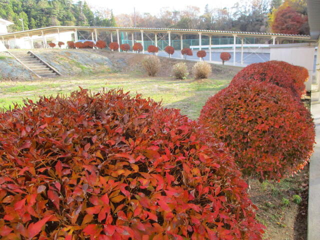 暦の上では、冬を迎えていますが湯本二中も紅葉から落ち葉が舞い散る景色へと変化を遂げようとしています。