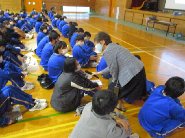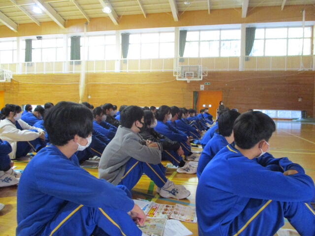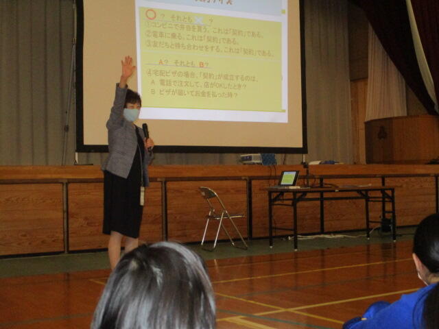 昨日6校時、本校体育館で全校生徒対象に消費者教育を実施しました。