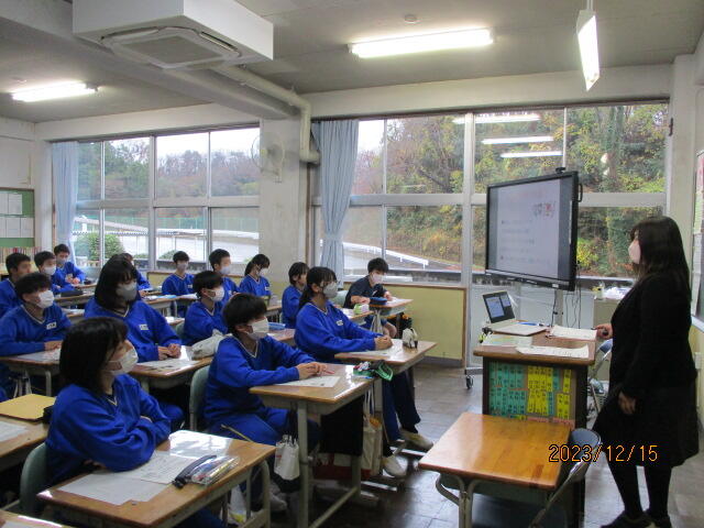 12月15日(金)常磐給食センターの栄養教諭の先生を講師にお招きし、1年生教室で食育講座を行いました。成長期にはたくさんのエネルギーが必要になること、スポーツをしている生徒はより多くの栄養を食事から摂る必要があることなどを教えていただきました。スポーツの種目別に必要な栄養素が違うということも教えていただき、部活動などに励んでいる生徒たちが熱心に話を聞いていました。