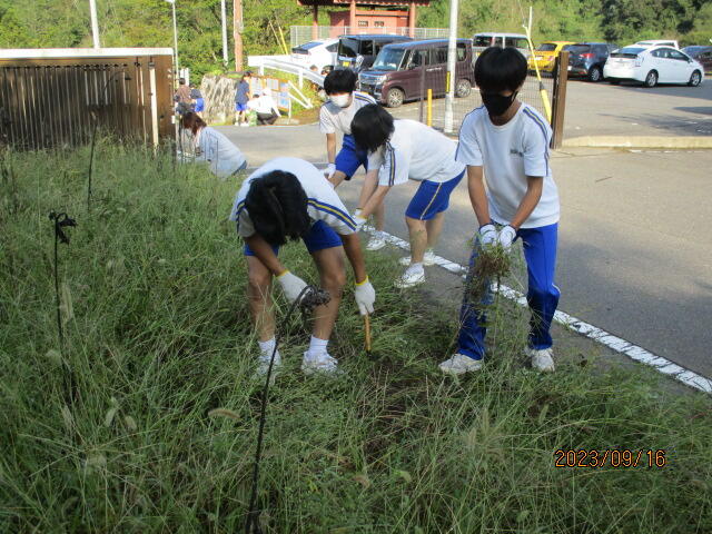 9月16日(土)、第2回PTA親子奉仕作業を行いました。今回は、晴天で午前7時からの実施でしたが、皆さん汗だくになりながら作業を行っていただきました。