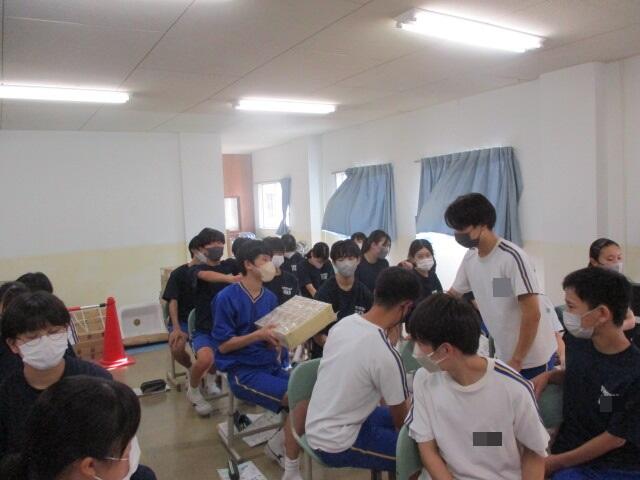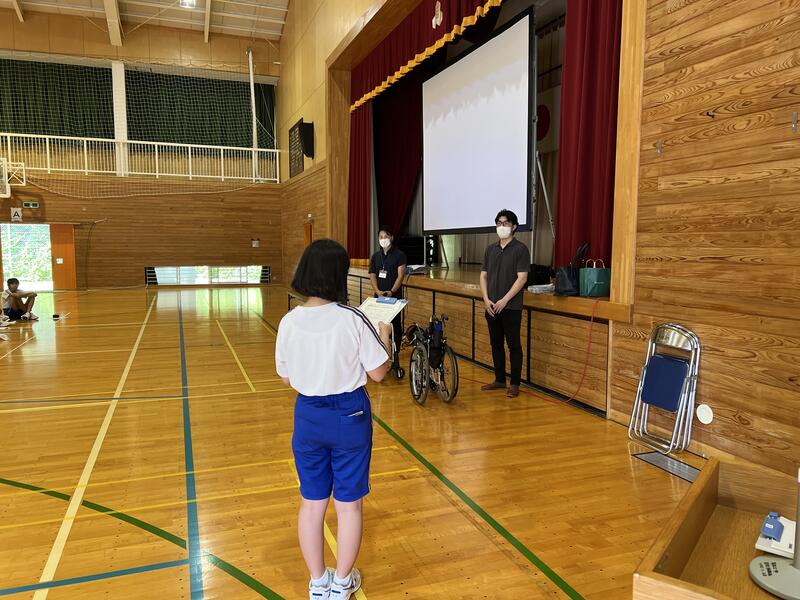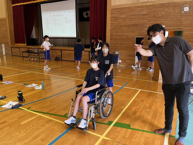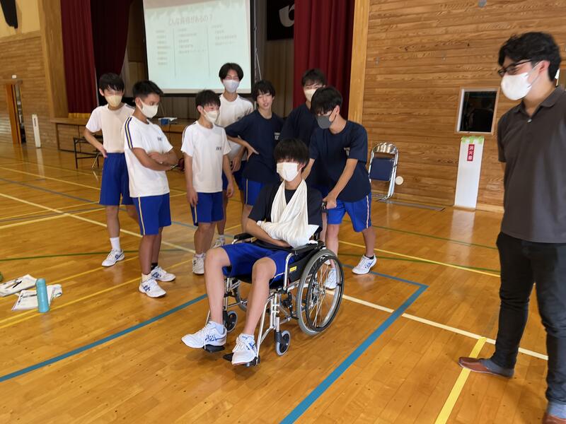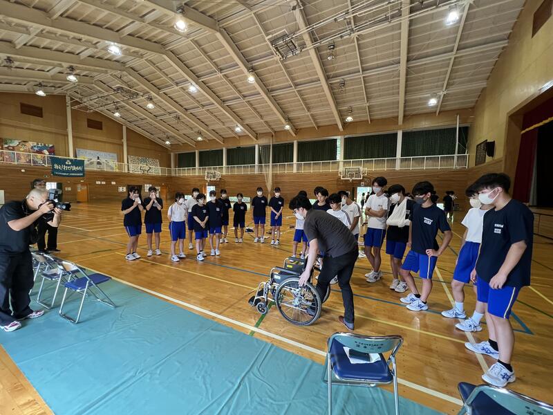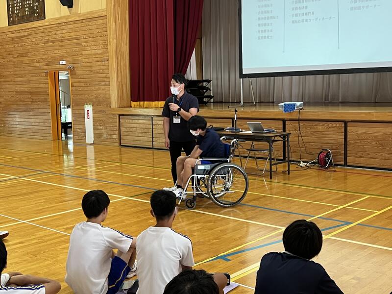 本日午後、3年生は福祉体験活動を行いました。特別養護老人ホーム「はなまる共和国」様のご協力により、介護士の方を講師としてお招きし、前半は、介護士の仕事や福祉についての講話をいただきました。後半は、実際に車椅子の体験をすることで、相手を思いやる大切さや、福祉の仕事の大変さなどを学ぶことができました。丁寧で分かりやすい説明と貴重な体験をさせていただきありがとうございました。