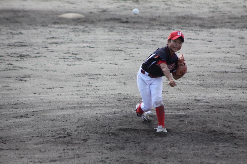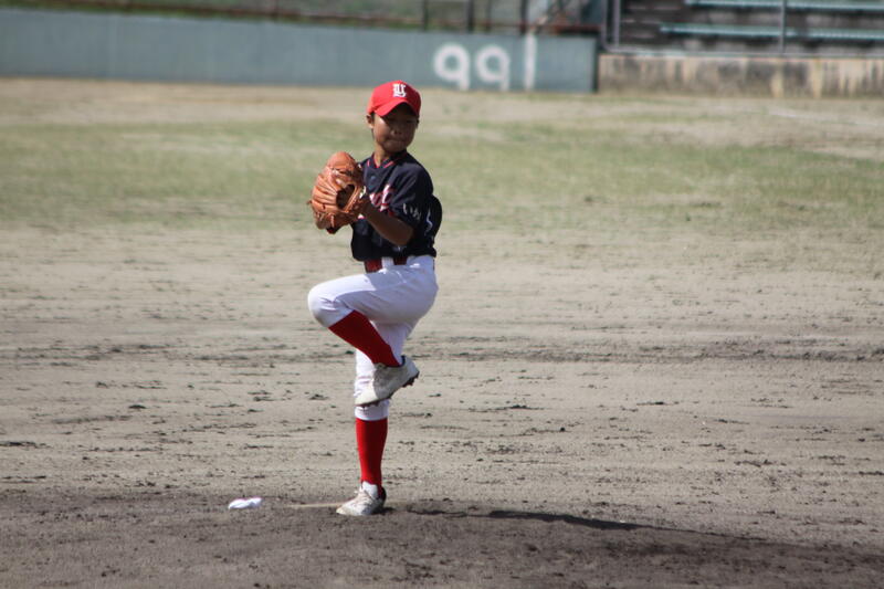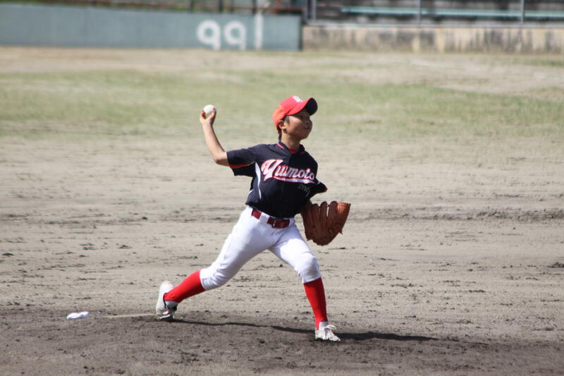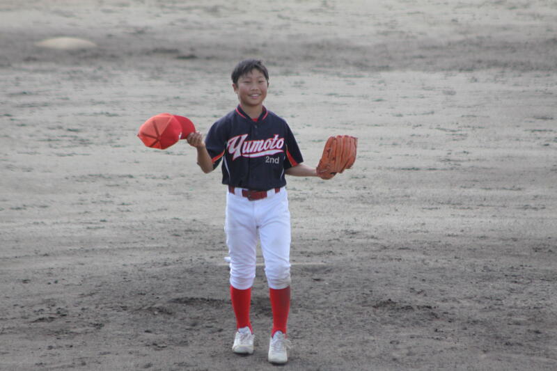 2番キャッチャーで先発出場し、初回の打席で初球からヒットを放ち、この日は3打数2安打1打点の大活躍でした。4回からはピッチャーとして、抜群の制球力、切れの良い変化球で、好投しました。湯本連合チームは、1年生が多い連合チームではありますが、声を掛け合い、ひたむきにプレーするさわやかな試合を見せてくれました。今回も一緒に連合チームを組んでいただいた湯本一中・湯本三中の皆さん、そして応援に駆けつけていただいた保護者の皆様、本当にありがとうございました。