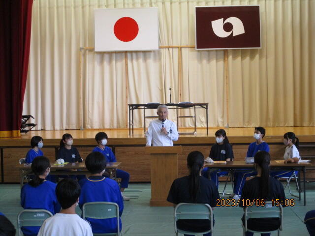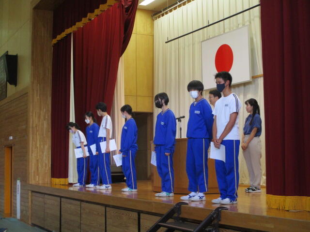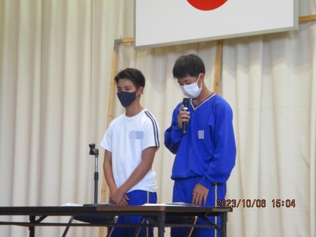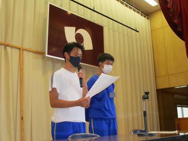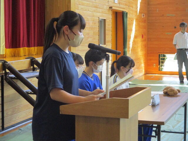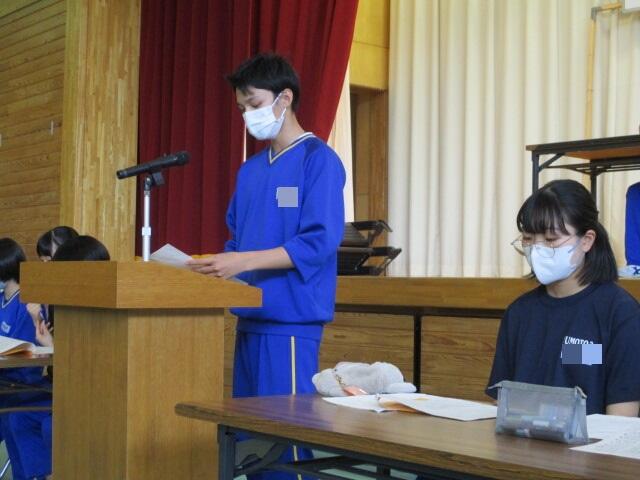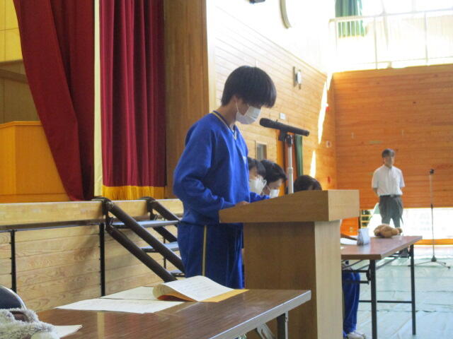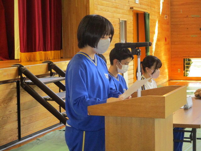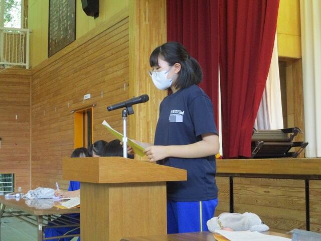 任命式では、生徒会本部役員、専門委員会、学級の役員を任命し、リーダーとしての求心力と創造力に期待しますと話しました。