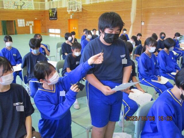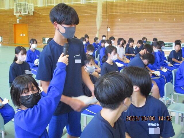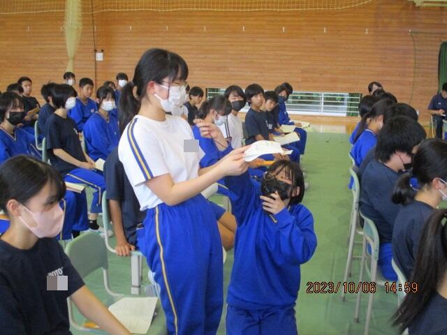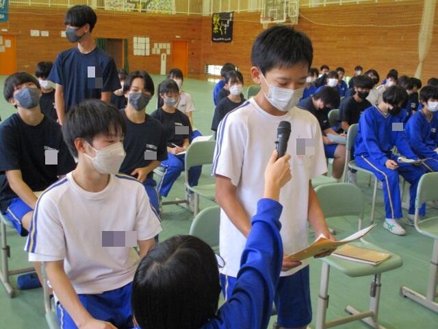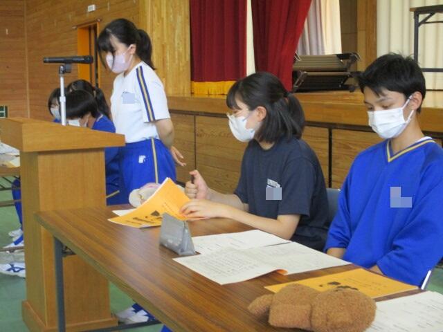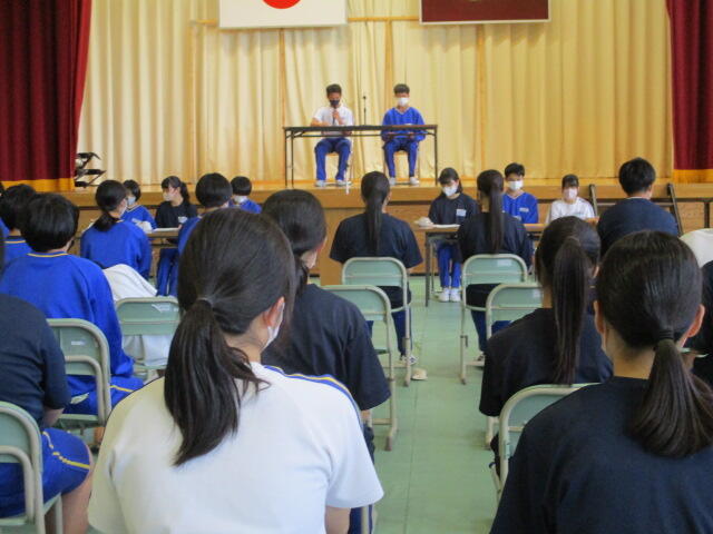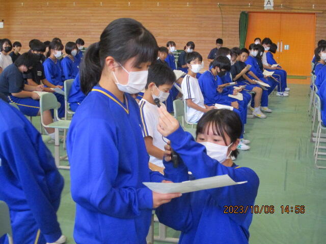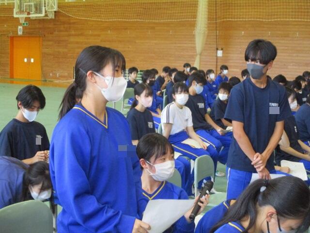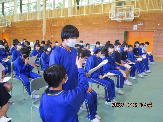 本日6校時、体育館で任命式および生徒会総会を行いました。