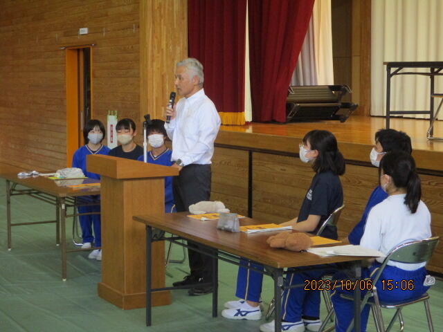 9月28日(木)6校時にいわき税務署から講師をお招きし、3年生を対象として租税教室を行いました。「もし税がなかったら…」と仮定したDVDを視聴し、暮らしと税について考える内容で、ご講義をいただきました。今回の題材は、税の必要性や公平性なども深く考える学習となりました。最後に1億円のレプリカで「いろいろな重み」を体験し、税についての知識を深めることができました。