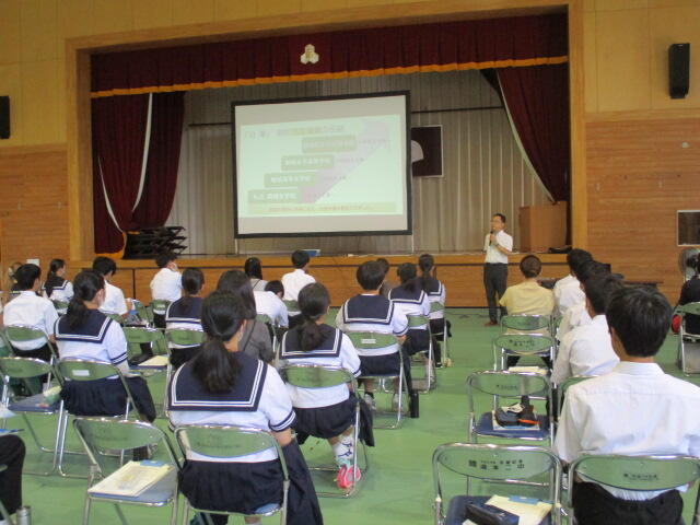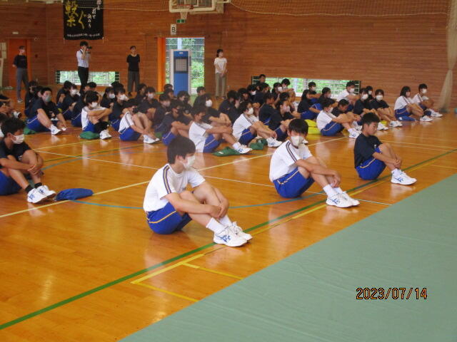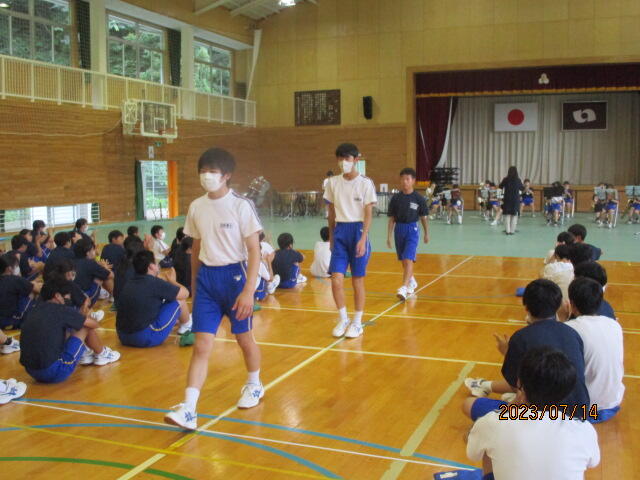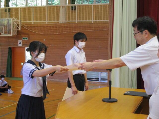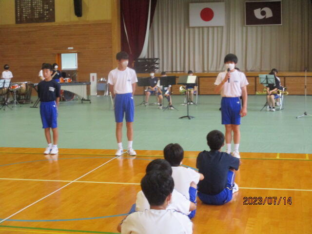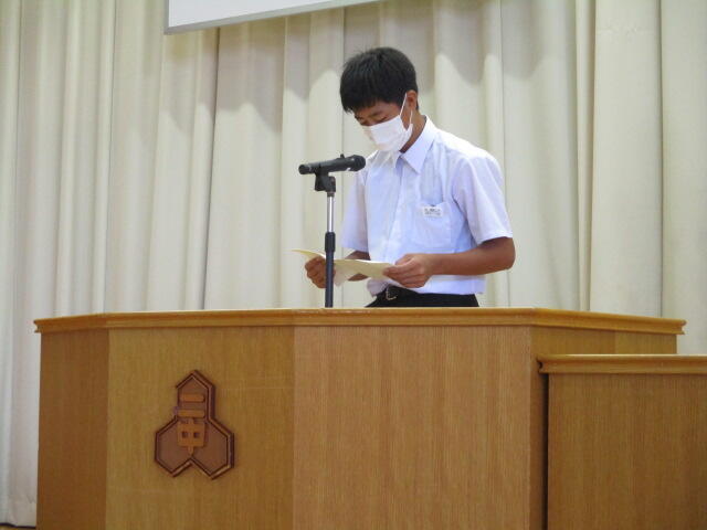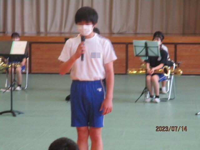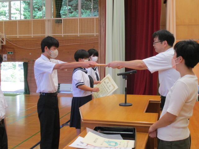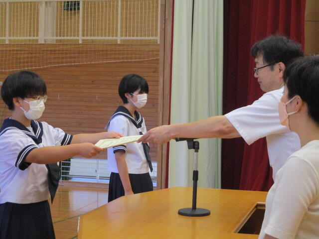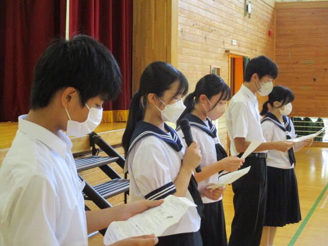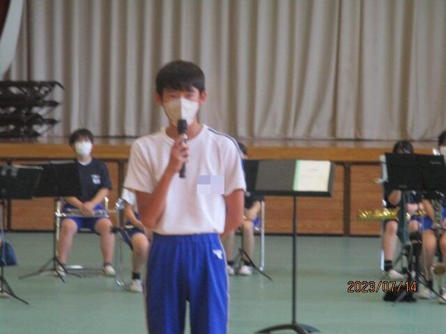 式終了後は、夏季休業中の受賞者の表彰や学年代表による2学期の目標の発表、そして市駅伝大会の激励会を行いました。