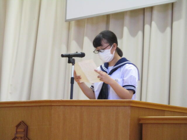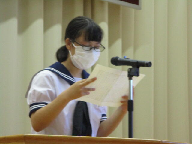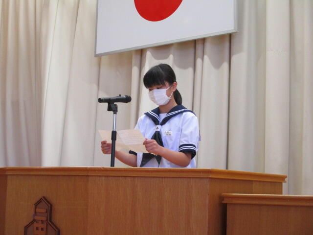 2つめは、あいさつを元気よくするということです。あいさつがつい小さな声になってしまうことがあります。これからは、元気よく大きな声で、あいさつをしていきたいと思います。