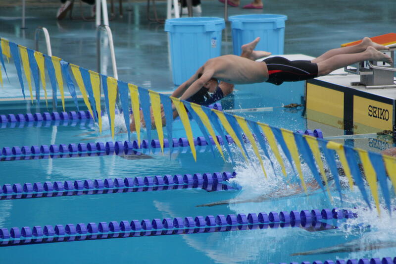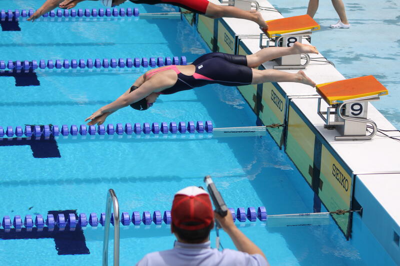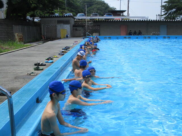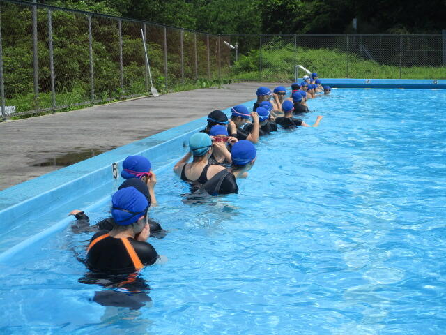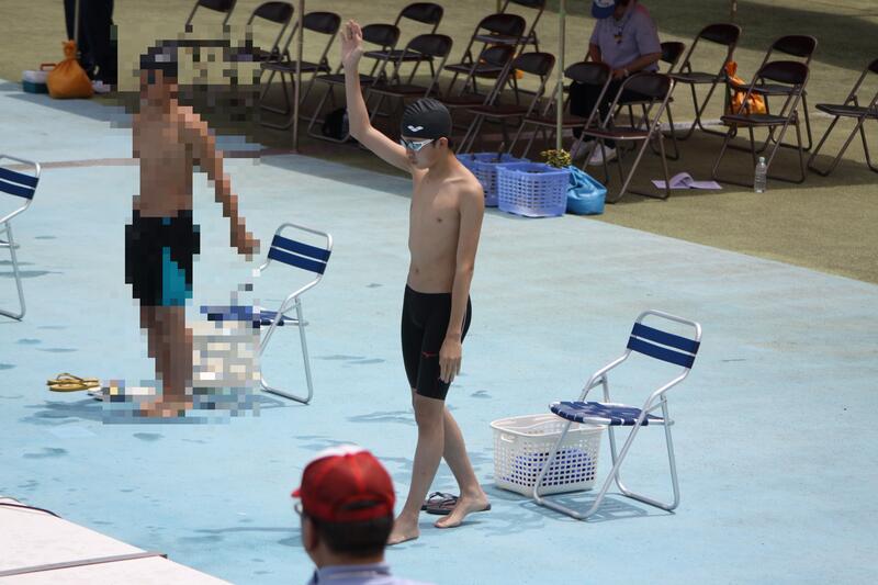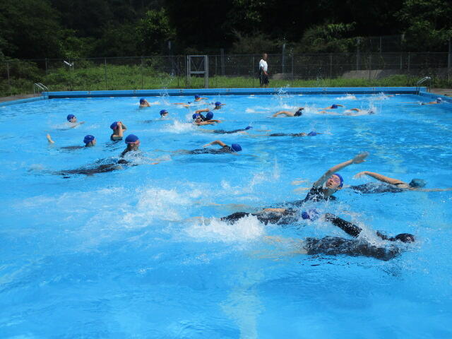 6月13日(火)・14日(水)の両日、市中体連大会水泳競技が市民プールで行われました。1日目は、雨がぱらつき曇りながら晴れ間も見られましたが、2日目は、小雨から時折豪雨に見舞われるという大変不安定な天気でした。保護者の皆様には、テントを準備していただき、選手の皆さんは、安心して競技に臨むことができました。ありがとうございました。本校は、3年女子が、50m自由形と100m平泳ぎで、いずれも7位入賞を果たすことができました。