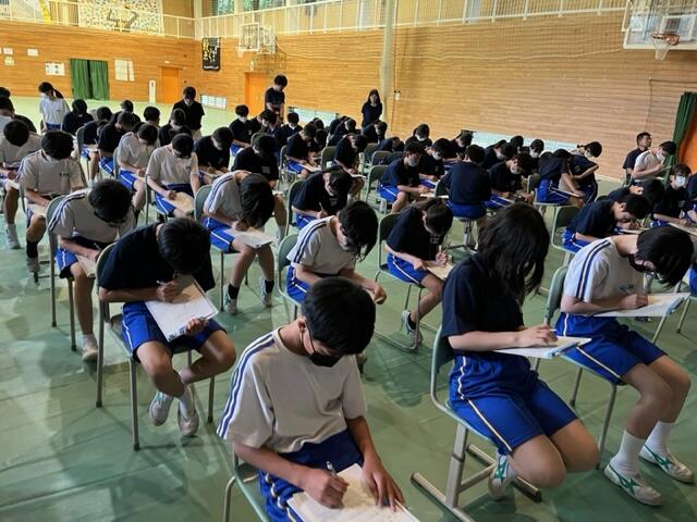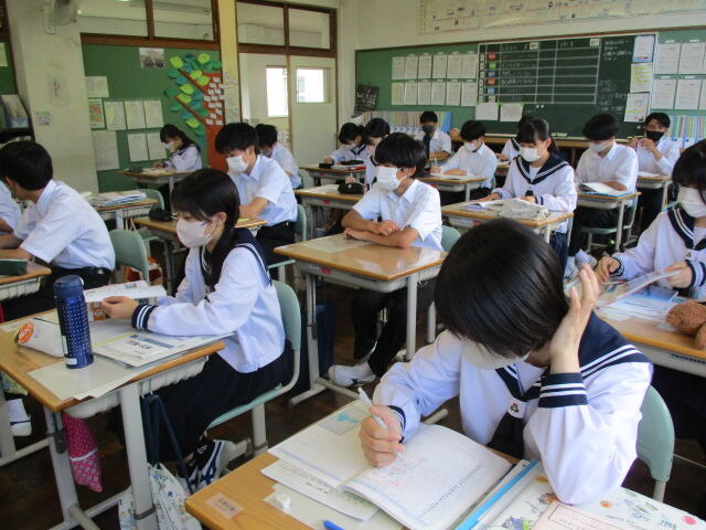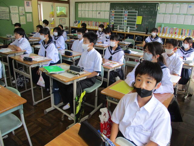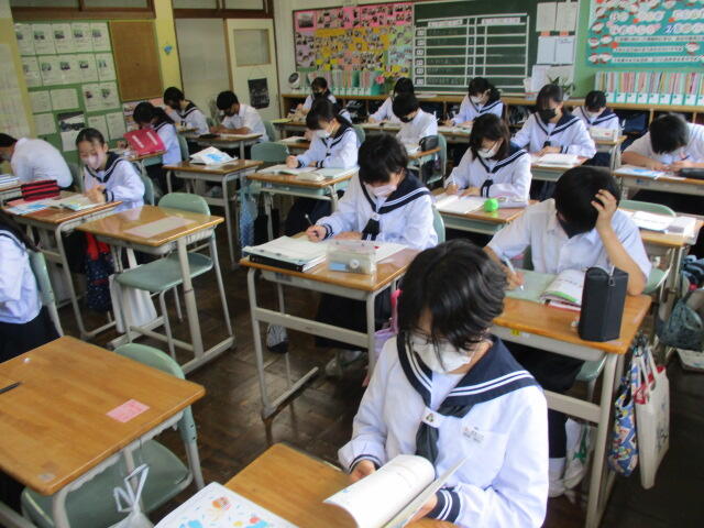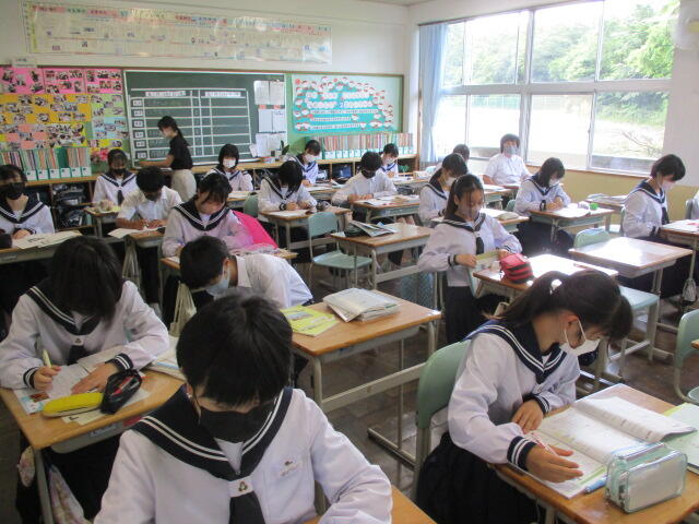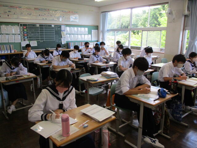 本日は、朝は強い雨が降り、晴れ間が見えたと思ったらまた小雨。猫の目のようにお天気が変わる日でした。来週は期末テストがあり、今週はずっと朝の時間はスタディタイムです。今は曇り空のような心境でしょうが、テストが終わればもう夏休みはすぐそこです。がんばれ湯本二中生!