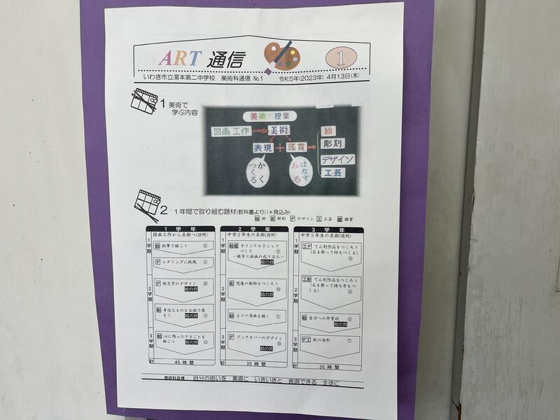 美術の先生は、他校と兼務で週2回本校を訪れて美術の指導をしていただいています。毎回、台車が必要なほどたくさんの荷物を持って出勤し、充実した指導をしていただいています。