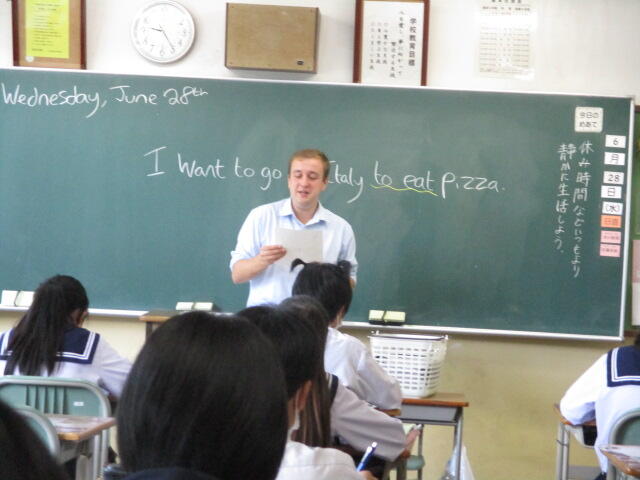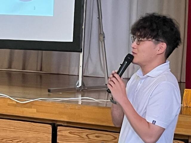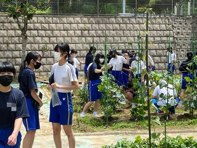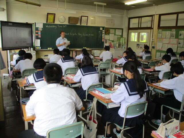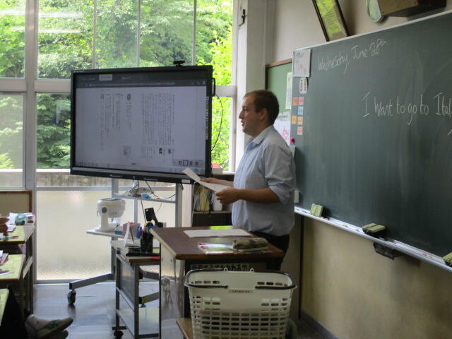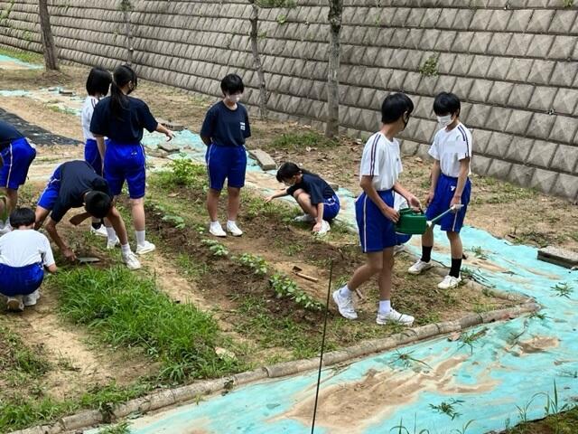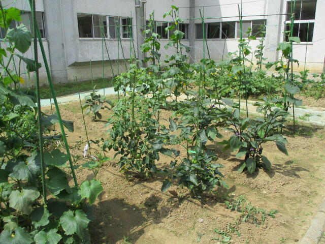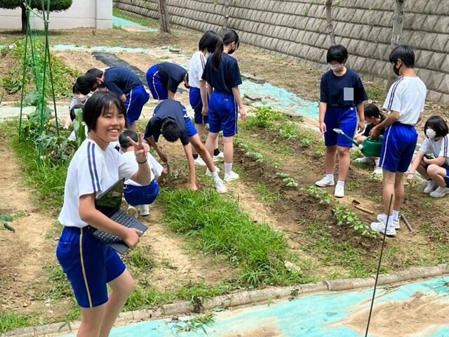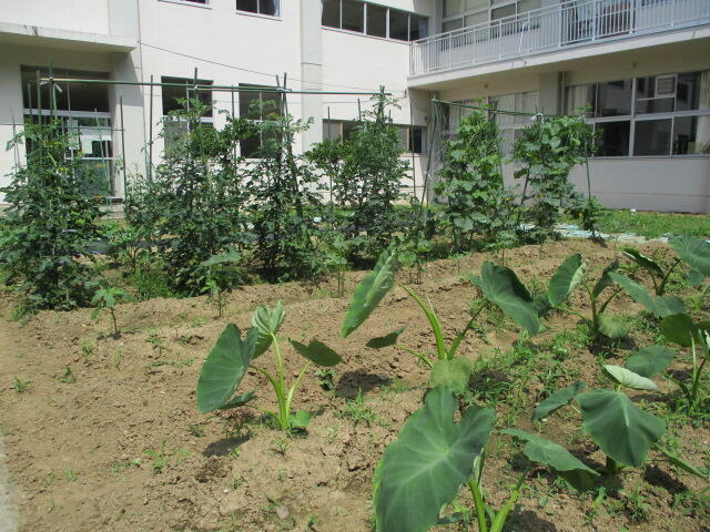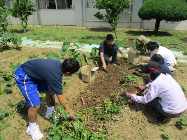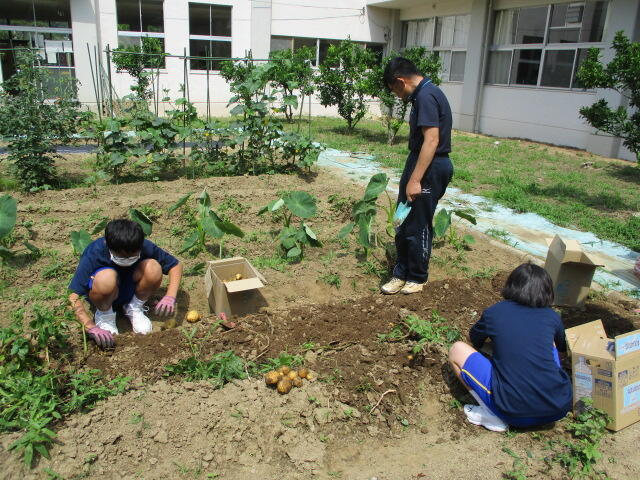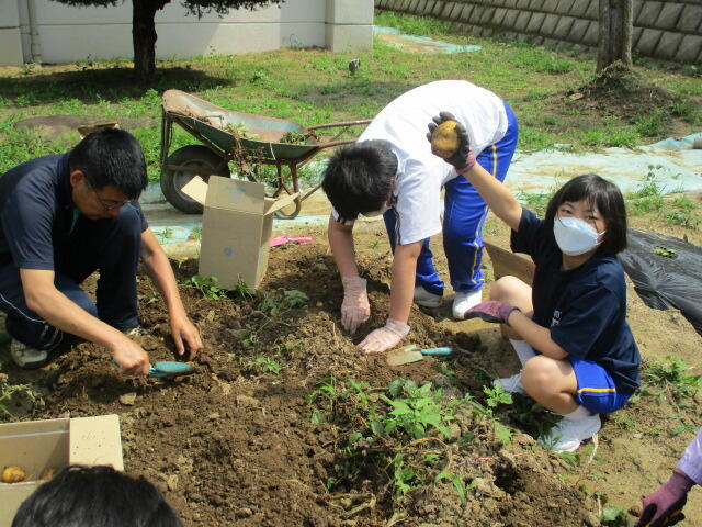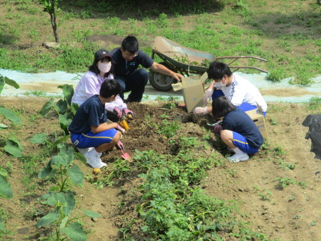 夏本番となり、プールの授業やジャガイモの収穫など行っていました。英語はALTの先生が来て授業を行っており、とても楽しそうでした。