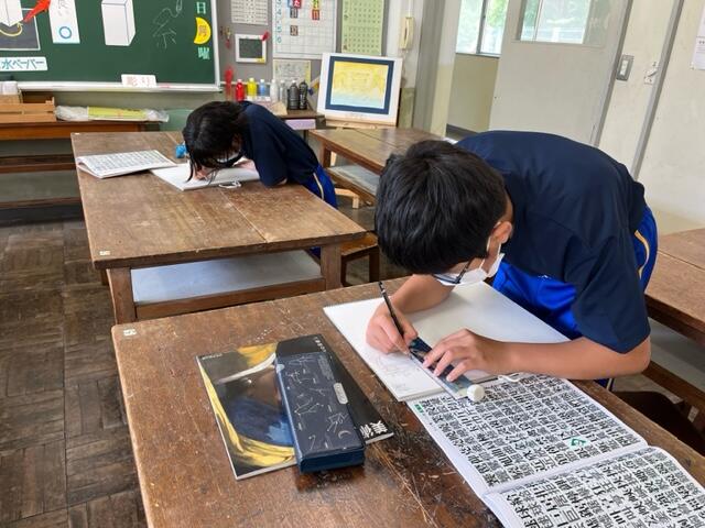 3校時の授業の様子です。美術は、篆刻(てんこく)やレタリング。技術は、生物育成の技術について、タブレットも活用しながら学習します。