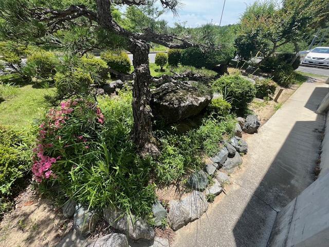 1学年は、正面玄関、花壇~坂駐車場