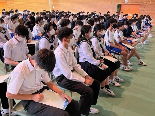 違法薬物は、私たちの日常とはかけ離れた世界だと思っていた人も、正しい知識と判断力、そして強い意志を持たないといつ巻き込まれるかわからないという現実が理解できたと思います。率直に淡々と真実を伝える先生の言葉に生徒の皆さんも聴き入っていました。